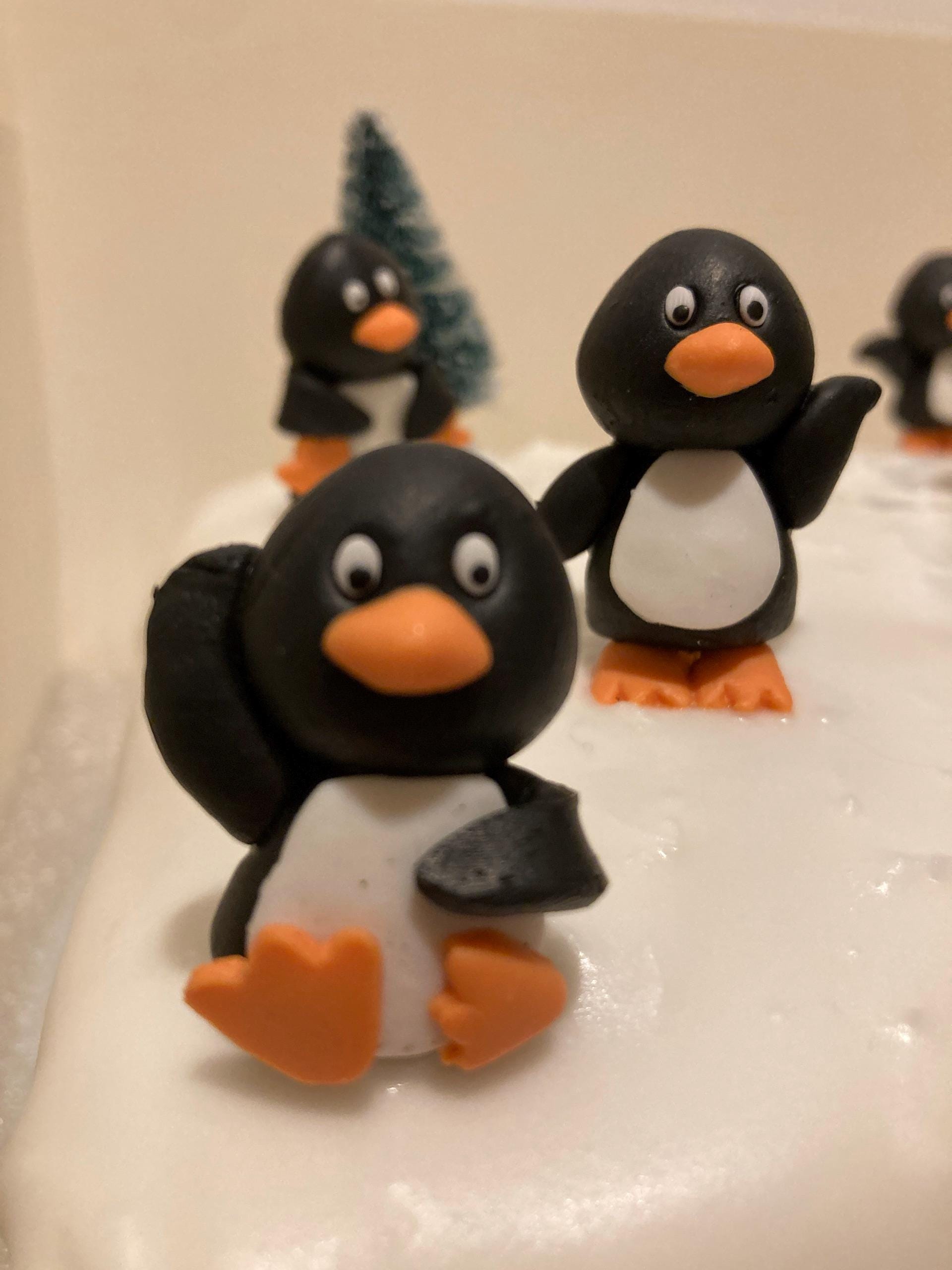 These adorable penguin decorations - exactly as shown on the picture. Looking forward to putting on my christmas cake.They arrived on time & well packaged. Definitely would recommend.